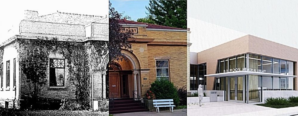 The D.R. Moon Memorial Library was established in 1901 through a donation from Sallie Moon in memory of her husband, Delos R. Moon.The building's unique structural design is Romanesque architecture, designed by W. Ellery Channing Whitney. The building is on the National Register of Historic Places.